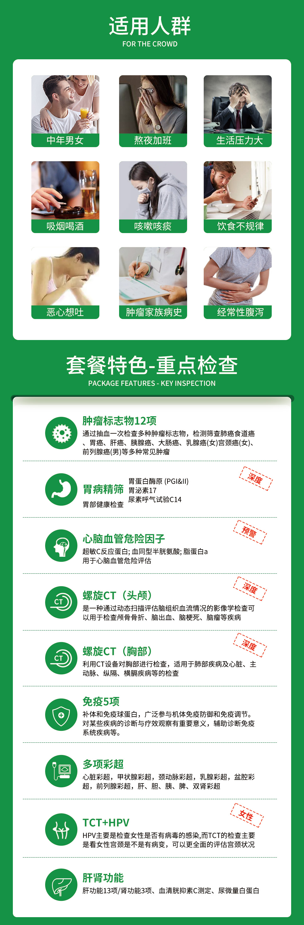 | 双CT+深度中老年体检套餐检项表 | ||