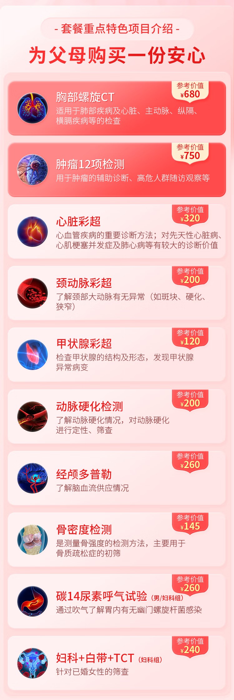 | 产品名称 : | 北京慈铭体检卡 感恩高端升级CT套餐 风湿糖尿病-心脑血管体检-24 |
